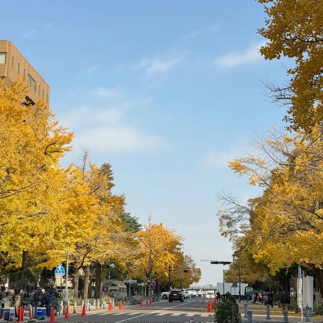 そんな歴史的な道路を彩るのが、街路樹のイチョウ並木です。春には一斉に芽吹き、大きく枝葉を広げて空を覆い尽くす大木は、秋風を感じる季節になると、その色を緑から黄金色へと変えていきます。ノスタルジックな建物を背景に秋の柔らかな日差しを浴びてキラキラと輝くイチョウ並木は、まさに絶好の散歩道。落ち葉を踏みしめながら、ゆったりと歩を進めてみましょう。一歩進むごとに歴史の重みと季節の美しさを同時に感じる、横浜ならではの贅沢な時間です。