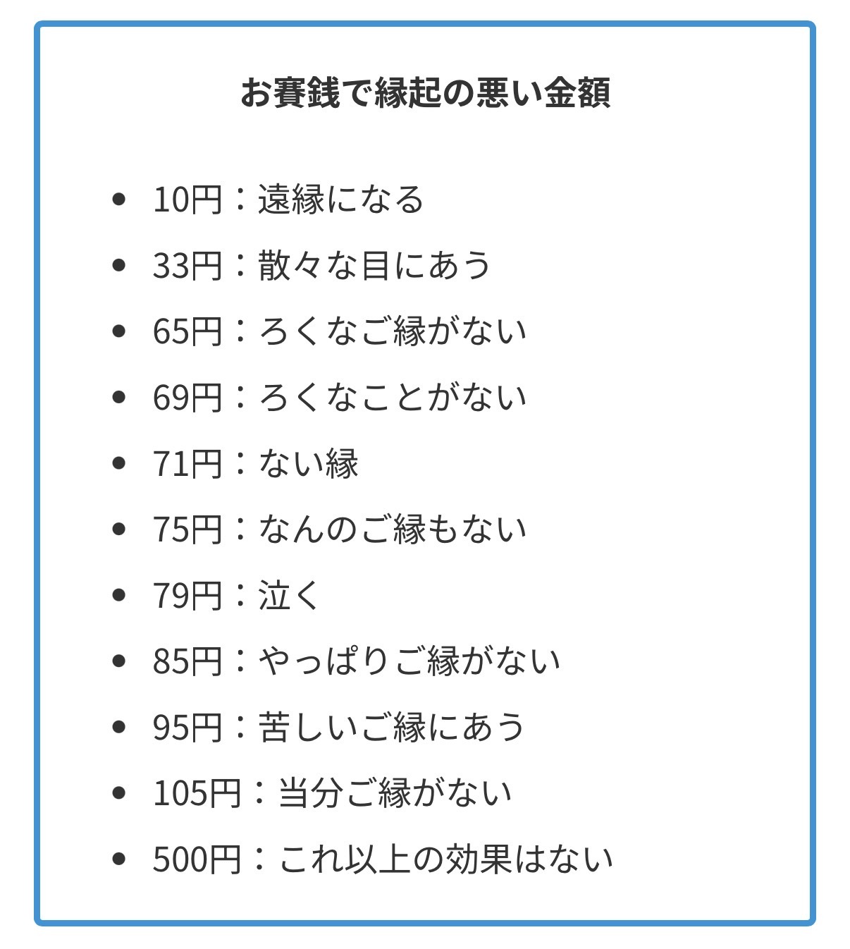 とくに多いのは、「5円=ご縁」に関する語呂合わせの金額です。その他、「ニコニコ」「よい福」など、縁起のよい言葉に数字をあてはめた金額を納める方もいらっしゃいます。